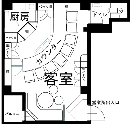 12人(カウンター8人:ボックス4人:他スツール) |