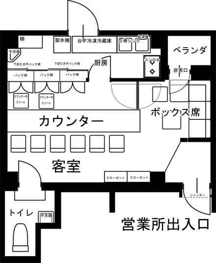 9人(カウンター6人:ボックス3人:他スツール) |